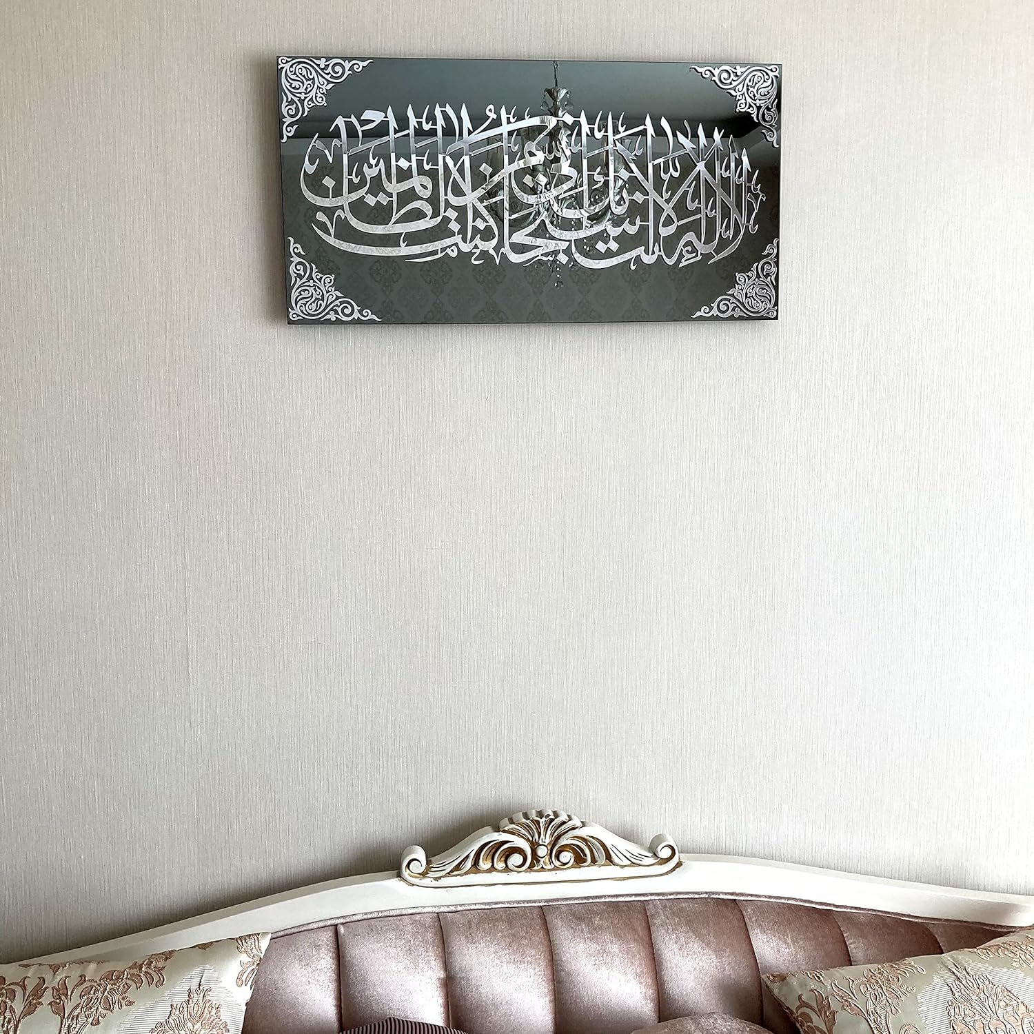 Experience the spiritual beauty of the Dua of Prophet Yunus with our exquisite arabic calligraphy Islamic wall art. Crafted with elegance and attention to detail, this stunning piece of Islamic glass art is the perfect addition to your Muslim home decor. The graceful curves and intricate designs of the calligraphy capture the essence of the dua, creating a truly mesmerizing display.
