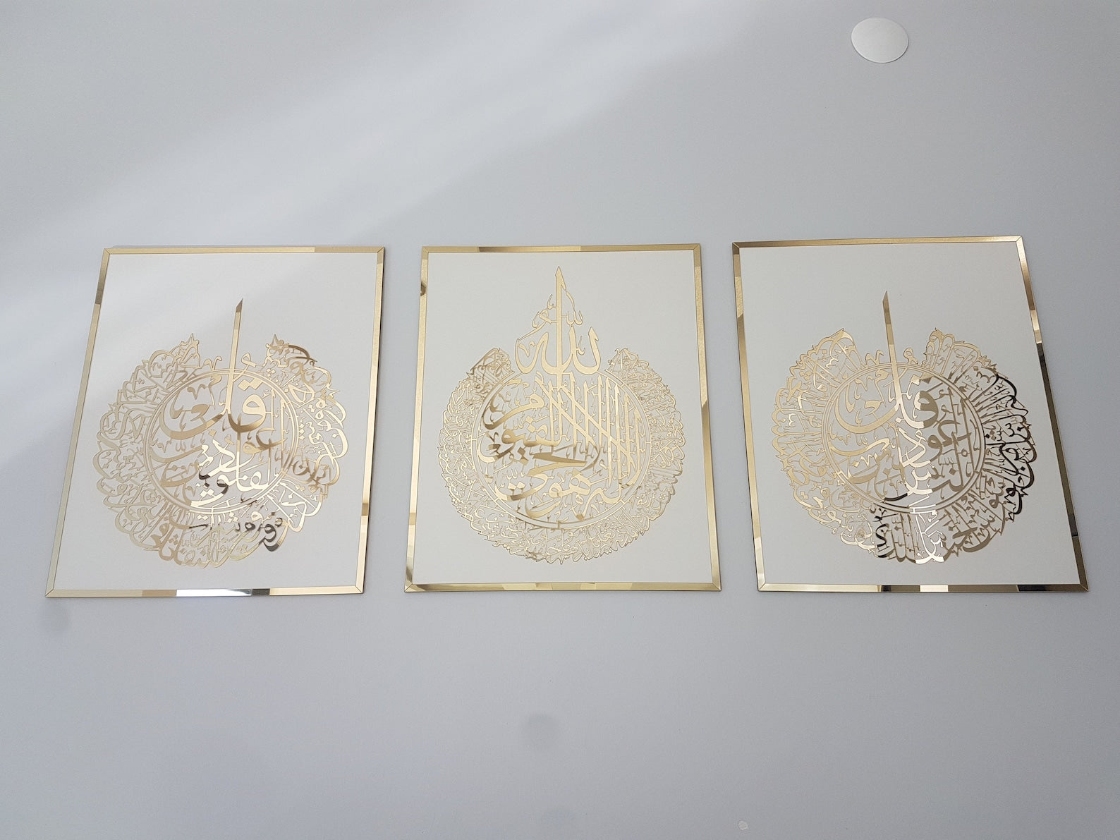Set of 3, Ayatul Kursi, Surah Al Falaq, Surah An Nas, Qul surah, Islamic Wall Art Home Decor