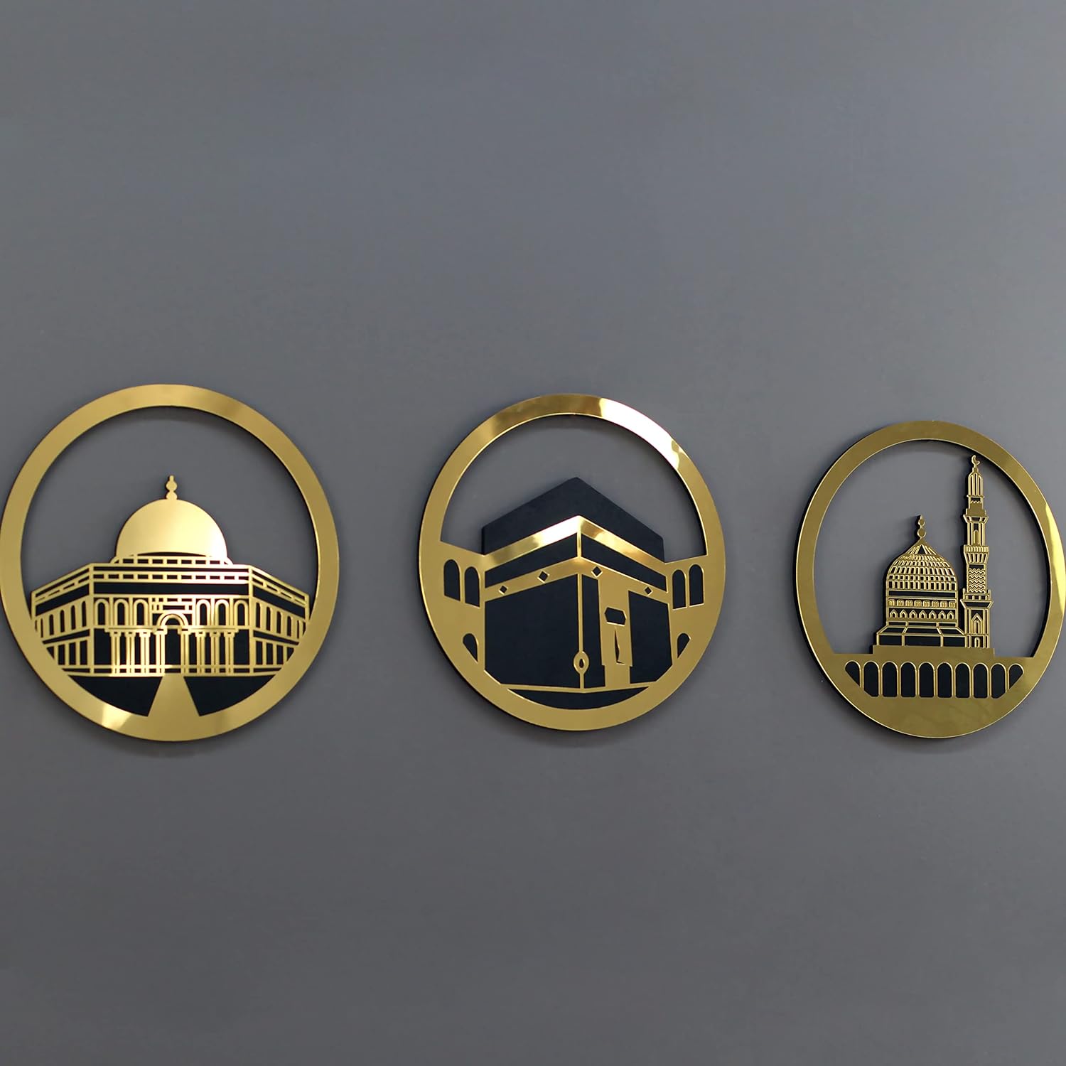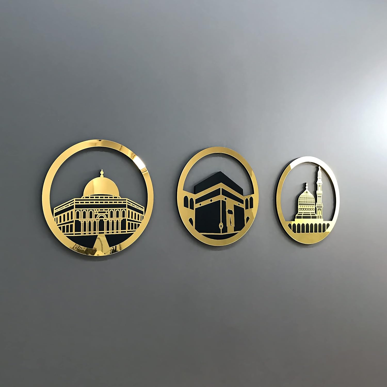 Set of Masjid Al Aqsa, Masjid Al-Haram & Masjid An-Nabawi Islamic Wall Art | Acrylic Kaaba Wall Decor